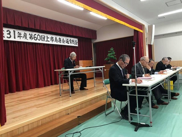 続いて、『平成31年度上市寿康会第60回通常総会』に出席しました。ご盛会おめでとうございます。遅参したにもかかわらず、ご挨拶の機会を作って頂きました。ありがとうございました。