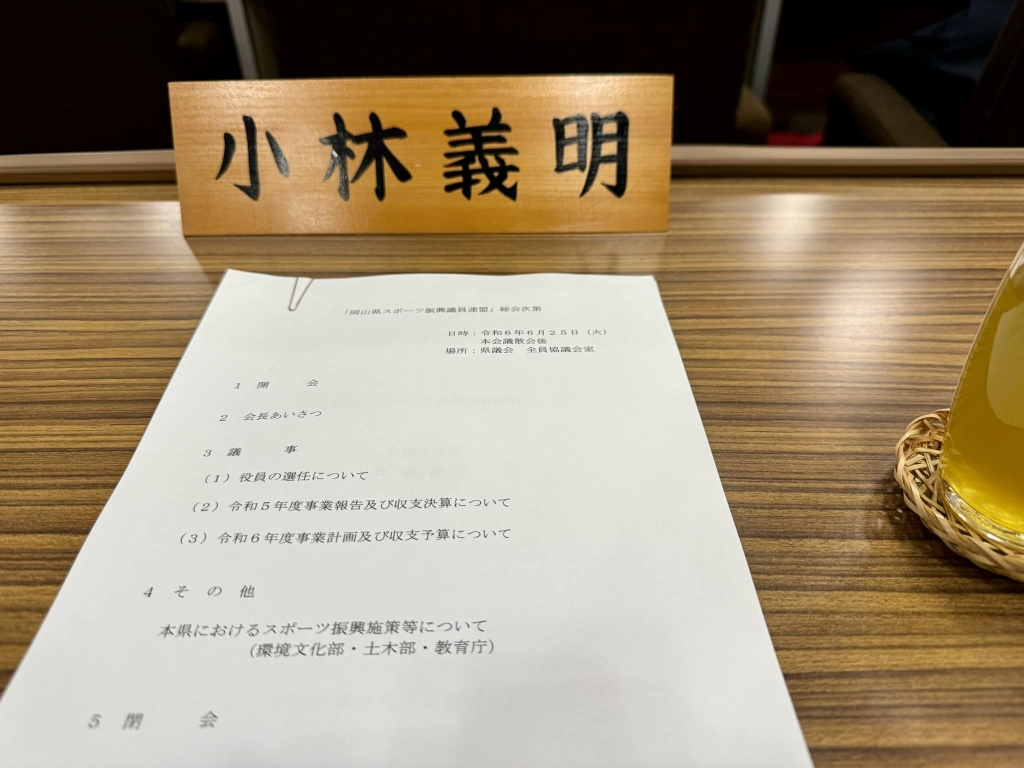 「6月定例岡山県議会」散会後に開催された「岡山県スポーツ振興議員連盟(千田博通会長)総会」に出席しました。会長発言に対する執行部の対応が凄い。
