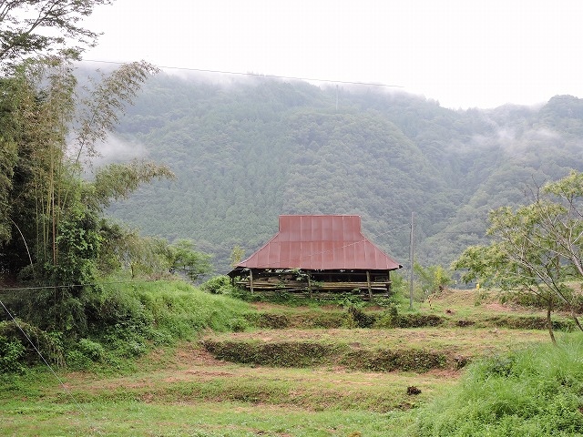 ひんやりとした気配の中での「朝のお散歩」、土の上。田舎暮らしの特権だわね。鳥も蝉も鳴いている。