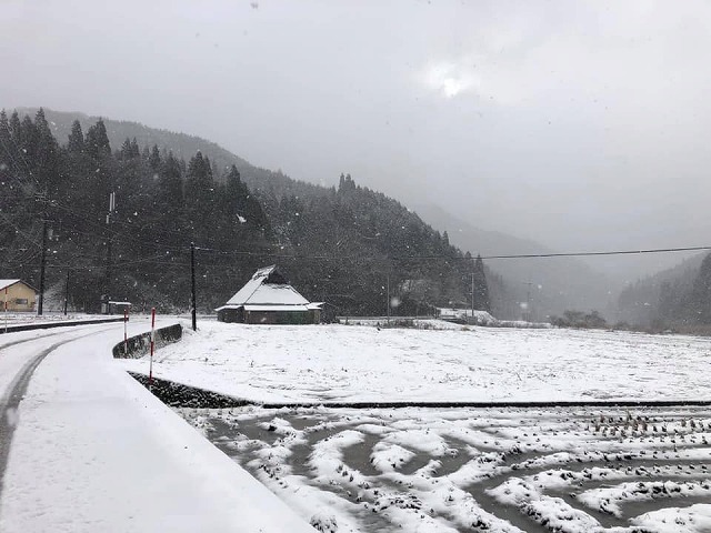 雪になったと情報を頂いた。新見市大佐です。大井野・君山地区でしょうか。