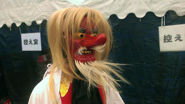 千屋納涼祭で。神楽を舞った中学2年生の山田くん。