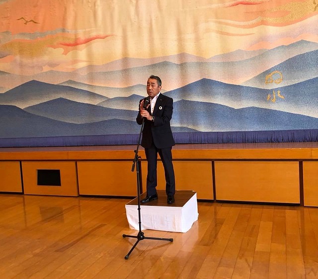 主役の池田新見市長のご挨拶です。「来年には市民の皆様に実感できる成果をお示しする」と力強く話されました。