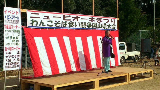 9時から、市内草間の「ニューピオーネまつり&わんこそば早食い食い競争岡山県大会」に出席しました。開会式でご挨拶の機会をいただきました。ありがとうございました。