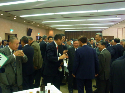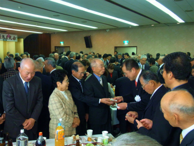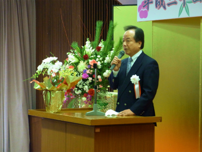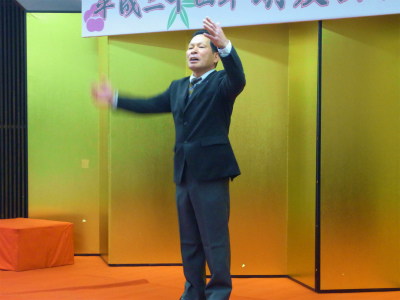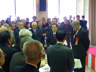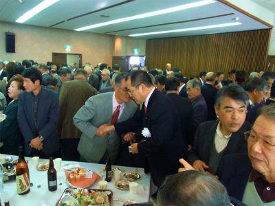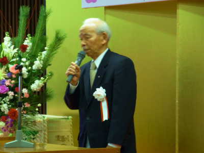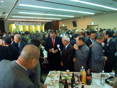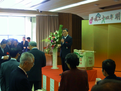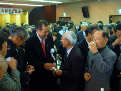 鏡割りをおこないました。             三村前県議による乾杯の音頭。