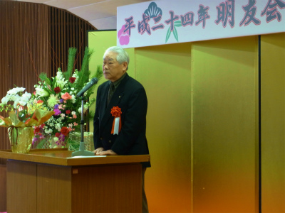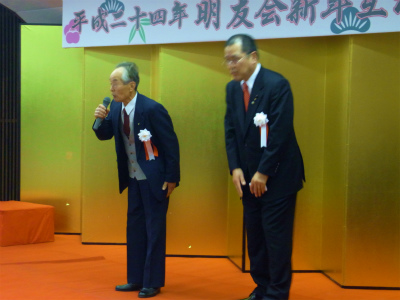 中島明友会会長代行開会挨拶。        川上明友会会長、主催者代表挨拶。
