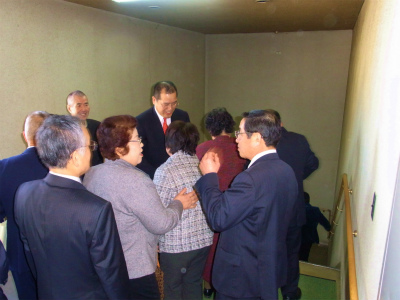 田村明友会副会長、閉会ご挨拶。     お見送りの握手です。感謝で一杯です。
