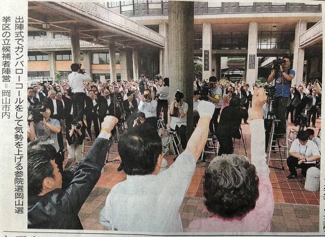 今朝の山陽新聞一面です。私も写り込んでいます。探してみてください(笑)