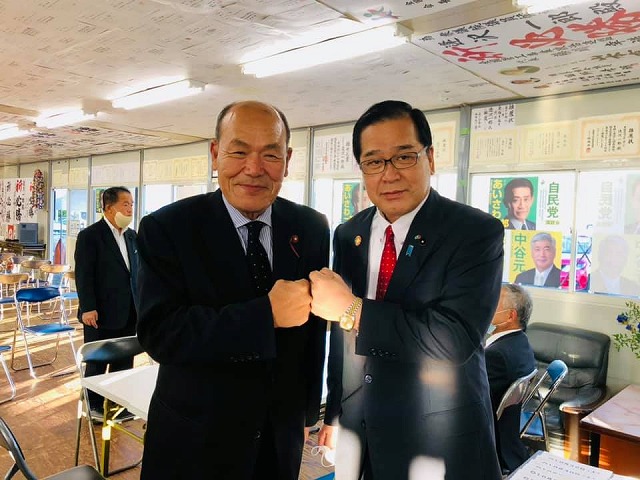 岡山市の逢沢一郎選挙事務所です。岡山市議会の和気議長とお会いしました。お世話になっています。頑張りましょう。