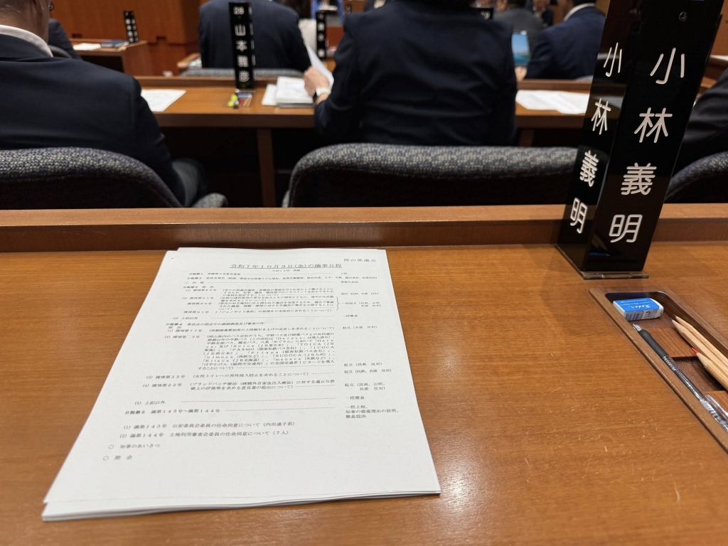 9時40分から、「自民党岡山県議団総会」に出席しました。続いて、10時から、「9月定例岡山県議会」に出席しました。12億2700万円の令和7年度一般会計補正予算案等16議案を可決して、閉会しました。
