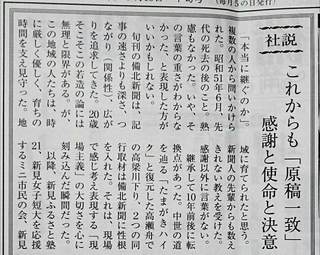 新見市の地元紙『備北新聞』の祝2000号「社説」です。おめでとうございます~♪