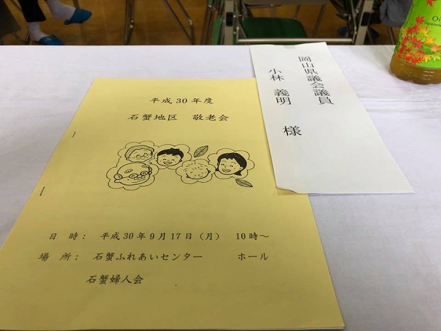 10時から、「石蟹ふれあいセンター」で開催された『平成30年度石蟹地区敬老会』(石蟹婦人会主催)に出席しました。おめでとうございました。一言ご挨拶の機会を頂き、ありがとうございました。