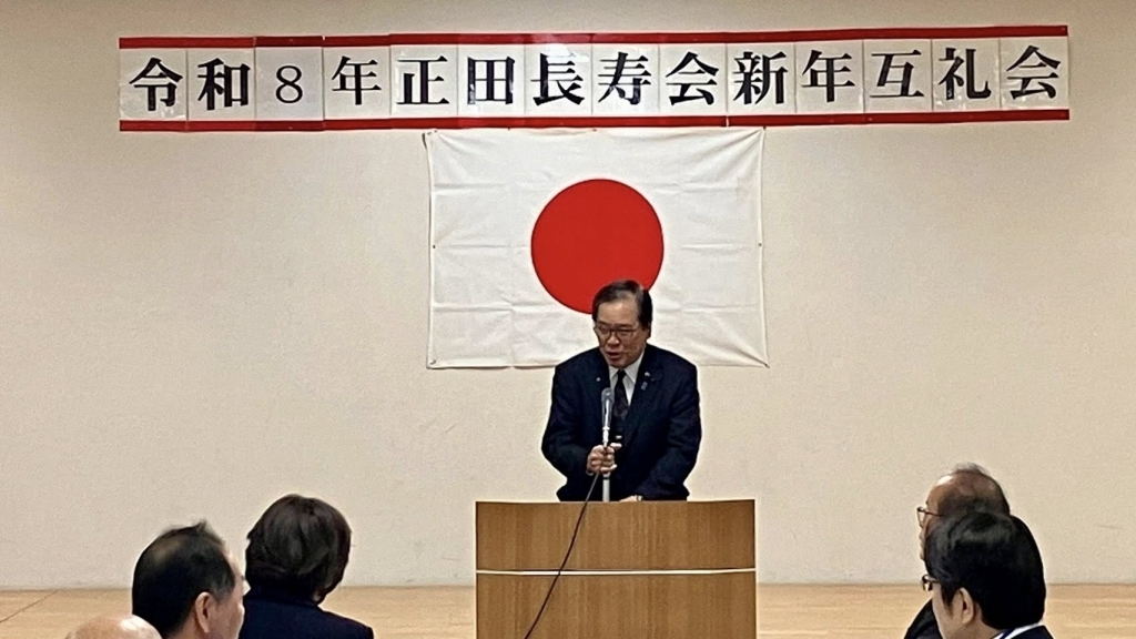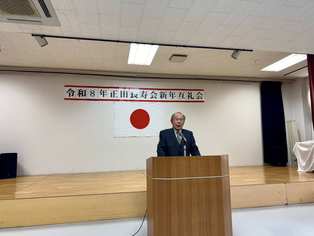 10時から、『令和8年正田長寿会新年互礼会』に出席しました。ご開催おめでとうございます。県表彰の伝達がありました。おめでとうございます。また、卒寿のお祝いがありました。おめでとうございます。本年もよろしくお願いします。