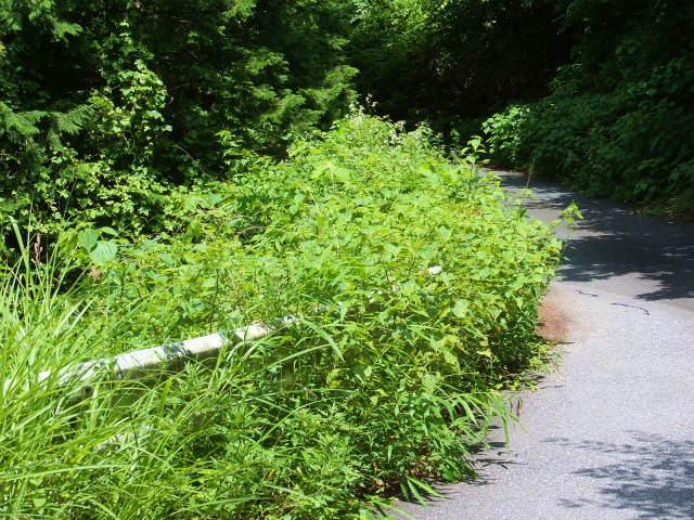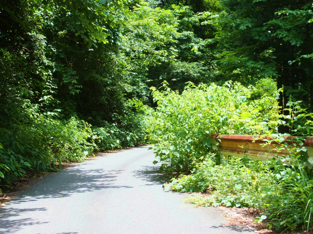 地元の皆様から、「高齢者ばかりで、どうもできん。草が伸びてなぁ。一回見てもらえんか」とご相談をいただいた。そっそ今日、現場を視察した。なるほど、車の両側から容赦なく草が擦れてくる。夜は街灯もないところだから、一層大変だろうと思った。ガードレールも草に隠れいてるのだから。
