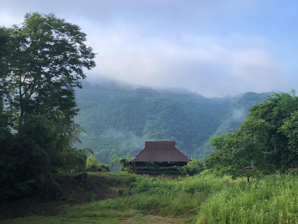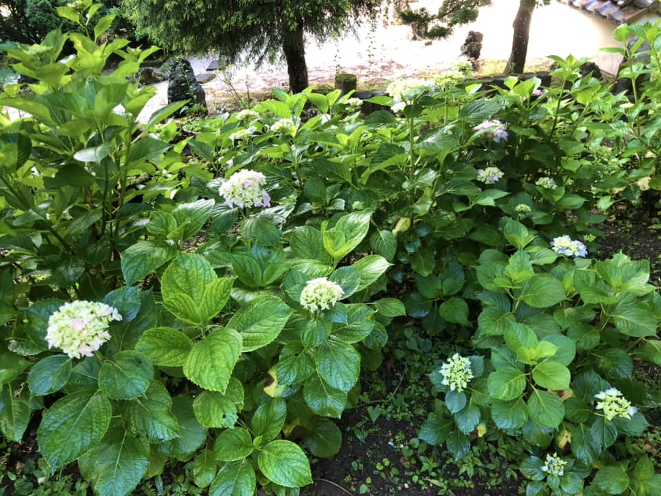 よく降りました。雷もなりました。朝、青空です。「まだかな、まだかなぁ~♬」の紫陽花であります。これから準備を整えて岡山市へ向かいます。