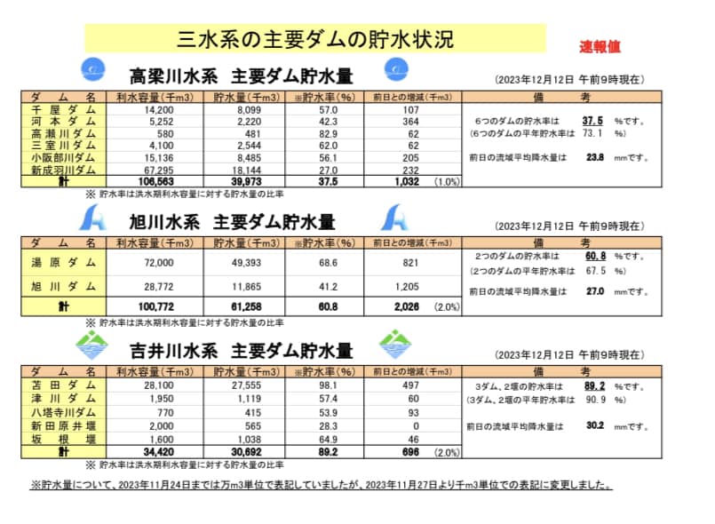雨降れど足らず。高梁川水系のダムの貯水率。