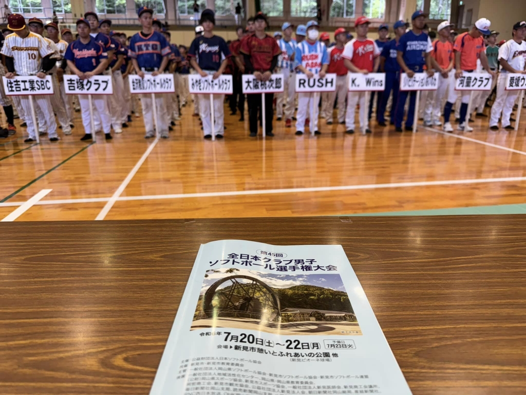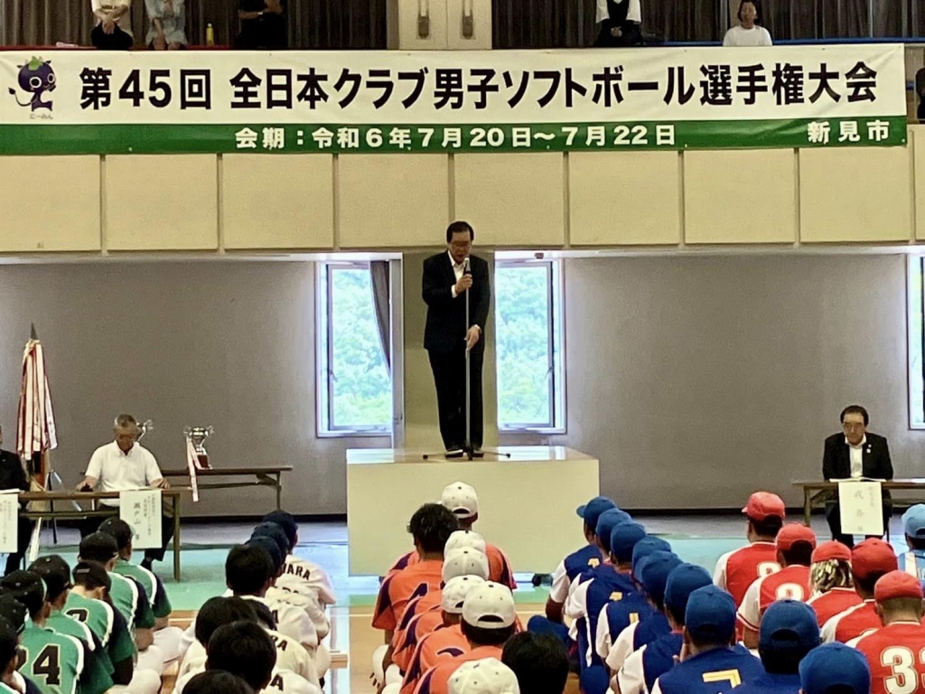 11時40分から、新見市役所。2件の協議、要望。15時30分から、新見市民体育館で開催された「第45回全国クラブ男子ソフトボール選手権大会・開会式」に出席。全国から32チームが、ここ新見の地に集い、熱戦を繰り広げる。大会は明日20日㈯から22日㈪まで。