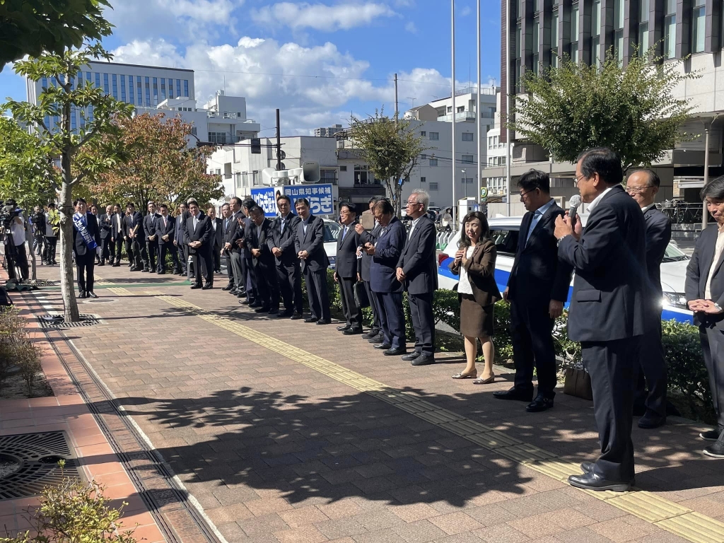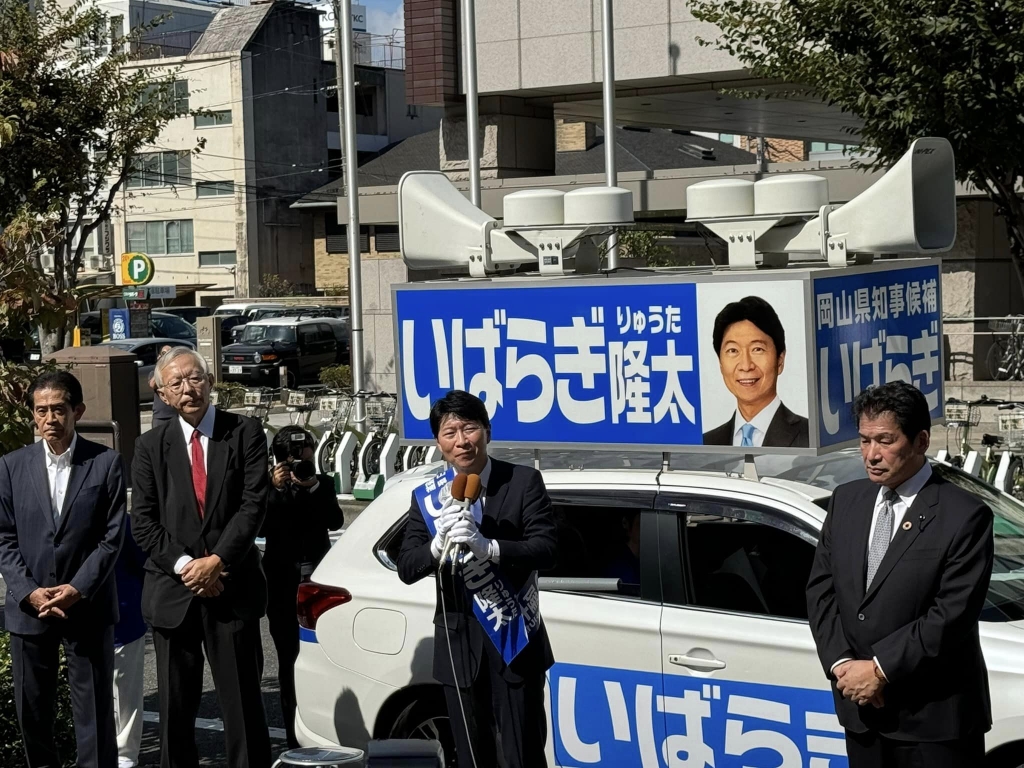 12時から、岡山県庁前広場で開催された「伊原木隆太候補出陣式」に出席しました。岡山県知事選挙は、10月27日が投開票日です。頑張りましょう。