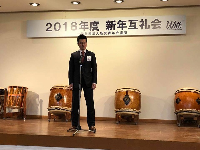 急いで新見へ帰って、「新見商工会館」で開催された『新見青年会議所2018年度新年互礼会』に出席しました。南理事長からバトンを受けた杉新理事長のもと、総力を結集して頑張りましょう!