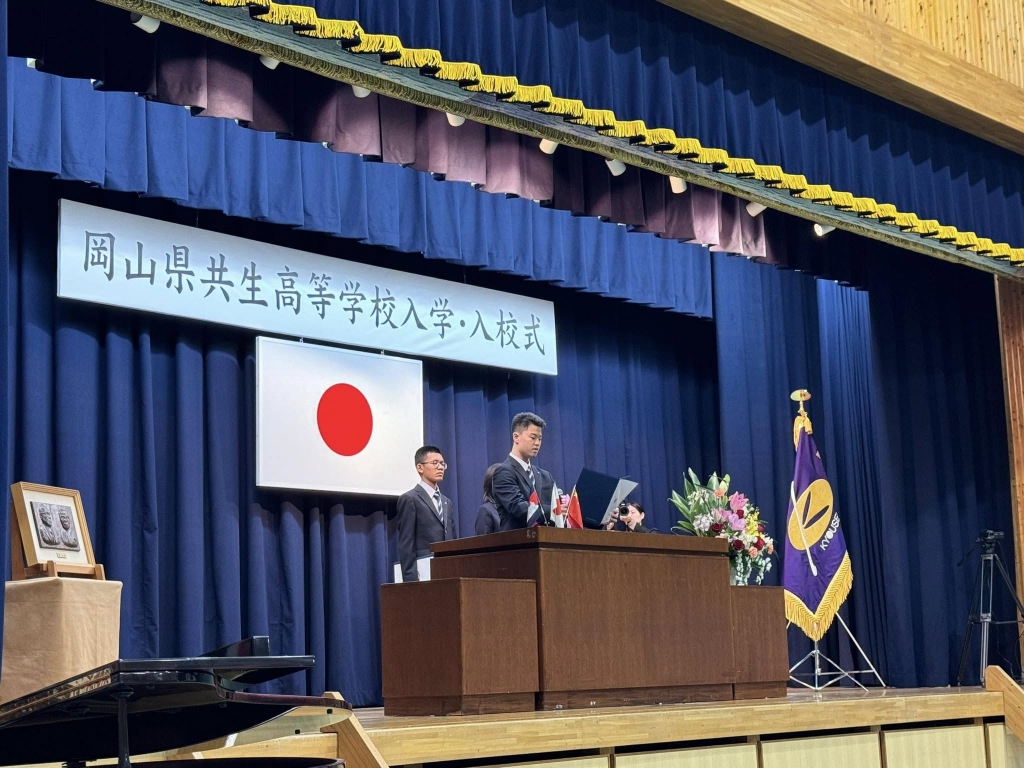 10時から、「岡山県共生高等学校入学式」に出席しました。理事長として、歓迎とお礼と激励のご挨拶をさせて頂きました。「やれば出来る。きっと出来る。良くなる。もっと良くなる。雲の上には青い空がある。」