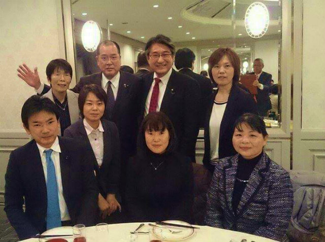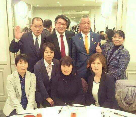 同じく石田昌宏参議院議員とを囲んで。渡邊知典県議、新見・高梁・井笠の役員の皆様と。
