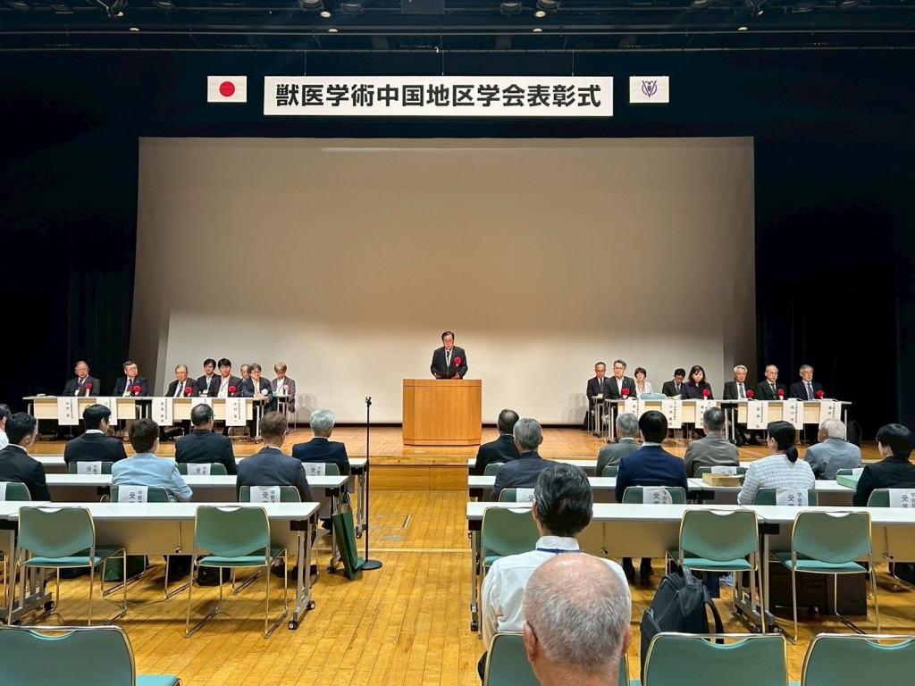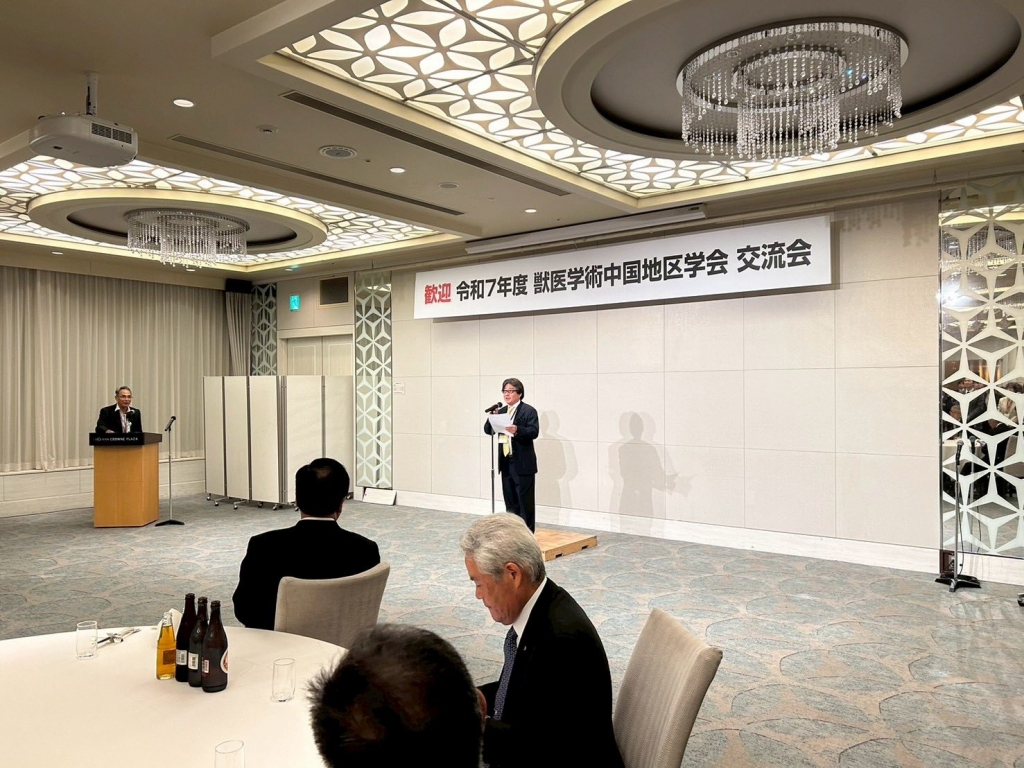 岡山市へ戻って、17時から開催された『令和7年度獣医学術中国地区学会表彰式』に出席しました。ご開催おめでとうございます。表彰されました皆様、おめでとうございます。続いて開催された『令和7年度獣医学術中国地区学会交流会』に出席しました。ありがとうございました。