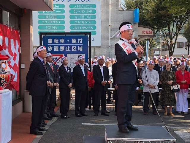 今日10月10日は、「第48回衆議院議員総選挙」公示日です。9時から、笠岡駅前の「加藤勝信事務所」前で開催された『加藤勝信候補出陣式』に岡山第5選挙区県議団として出席しました。12日間の選挙が始まりました。