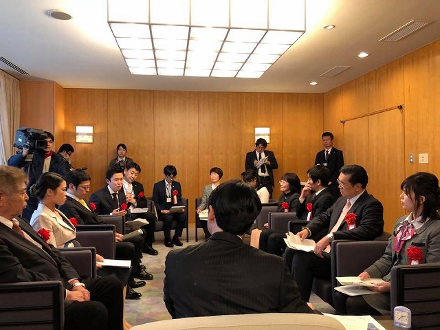 贈呈式の後に、受賞された皆様と知事との懇談会です。いい雰囲気です。