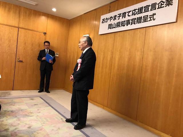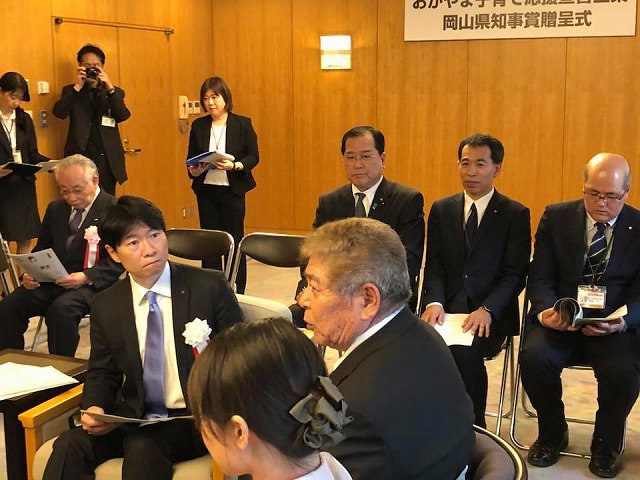 14時10分から、「岡山県庁3階特別応接室」で開催された『「おかやま子育て応援宣言企業」岡山県知事賞贈呈式』に、環境文化保健福祉委員長として出席しました。ありがとうございました。受賞された皆様、おめでとうございます。