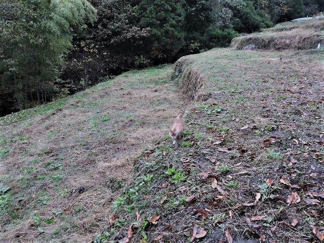 何かに導かれるがごとくの「朝のお散歩」のお付き合い。ますます活発元気になりました。「おかやまマラソン」の賑わいが、遠くから聞こえる山里の秋であります。本日もよろしくお願いします。頑張りましょう。