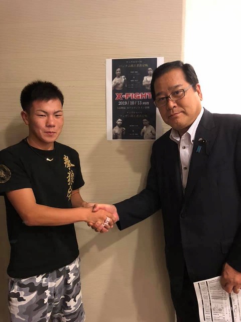 12時30分から、「哲多総合センター」で開催された『キックボクシング大会・XーFIGHT』に出席しました。リング上でご挨拶をさせて頂きました。緊張しました。神聖な場所ですから。選手の皆さん、頑張って下さい。