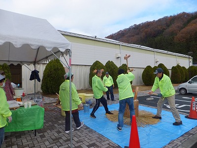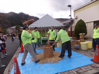 大井野の皆さんが、餅つき実演と販売と正月餅の予約販売を