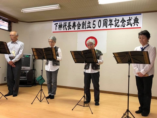 続いて、『下神代長寿会創立50周年記念祝賀会』が開催されました。おめでとうございます。