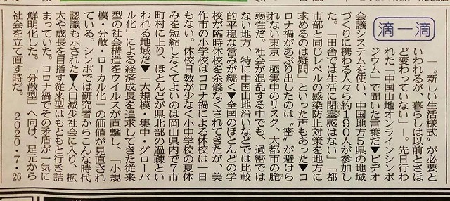 「なるほど、なるほど」と読ませて頂いた。7月26日の山陽新聞「滴一滴」です。