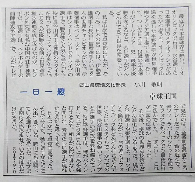 今日は一日、県議会図書室、県議会棟であります。14日㈭の一般質問原稿の作成作業。貧乏暇なしです。15時の休憩中、新見で購入できない山陽新聞夕刊を読む。小川部長と石原副代表理事であります。