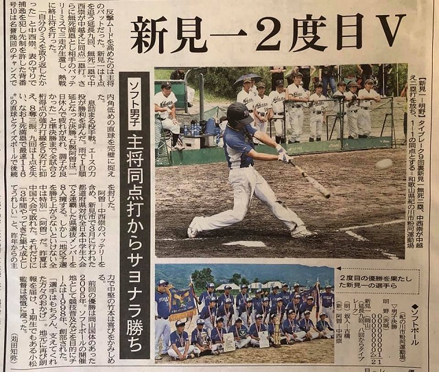 全国優勝!おめでとうございます。すごいね。すばらしいね。記事は、岡山県民の友「山陽新聞」です。