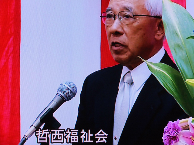 21日の「哲西福祉会敬老記念式典」でご挨拶をされる生原理事長です。