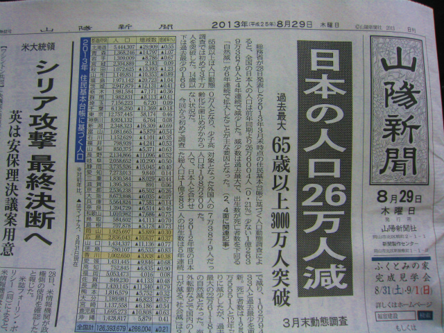 生産人口が8000万人割れしたとの報道だ。65歳以上の老年人口は3000万人台に乗ったそうだ。出生数は102万9433人と過去最低を更新した。広島、香川、鳥取、島根と比較して、岡山は出生率が最も低い。岡山県の人口は約192万人で0.3%の減。中山間地域はもっと深刻だ。6月定例県議会で、これらの対策を一般質問させていただいた。新見市議会でも大きなテーマとなる問題だろう。新見市の将来がかかっている。