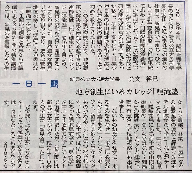 8時30分頃に県議会棟へ入り、山陽新聞夕刊のチェック。岡山県畜産協会長と新見公立大学長の連載を読む。