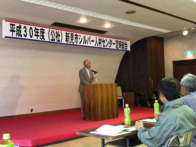 地方創生関係予算等について担当課から説明を頂いた後、急いで新見へ帰って、13時30分から「JA阿新会館」で開催された『平成30年度公益社団法人新見市シルバー人材センター定期総会』に出席しました。一言ご挨拶の機会を頂きました。ありがとうございました。自主自立、協働、共助を基本理念に信頼される魅力あふれるシルバー人材センターとして、ますますご活躍ください。