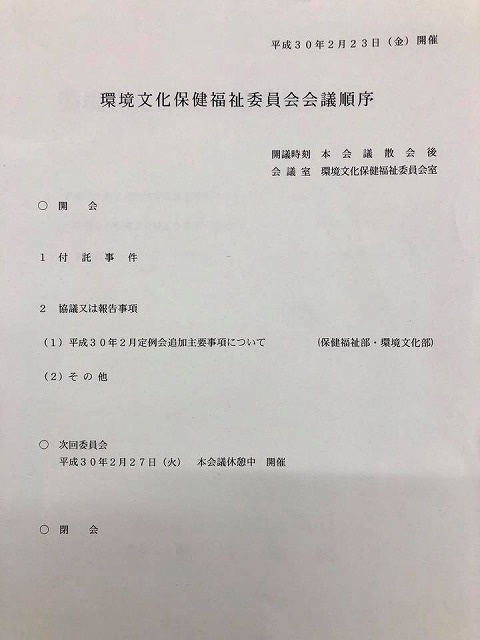 続いて、『環境文化保健福祉委員会』を開会。お疲れ様でした。
