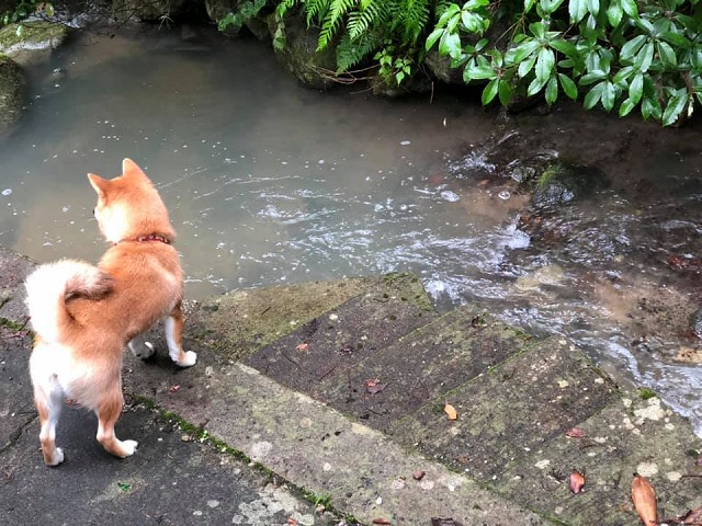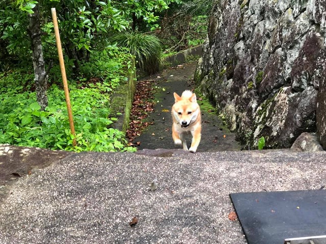 「朝のお散歩」、ついて行くのがやっとだ。振りかえっては立ち止まり、気遣ってもらっている。本日もよろしくお願いします。頑張りましょう。