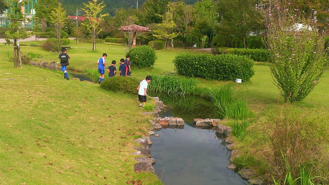30分ほど早く現地に参りましたので、公園内を散策しました。子供たちが、「ザリガニがおるよ」「ぼく、捕まえた」と大はしゃぎ。おじさんも一緒に遊んでもらいました。蓮が咲き、鯉が泳ぐ楽しいひと時でした。