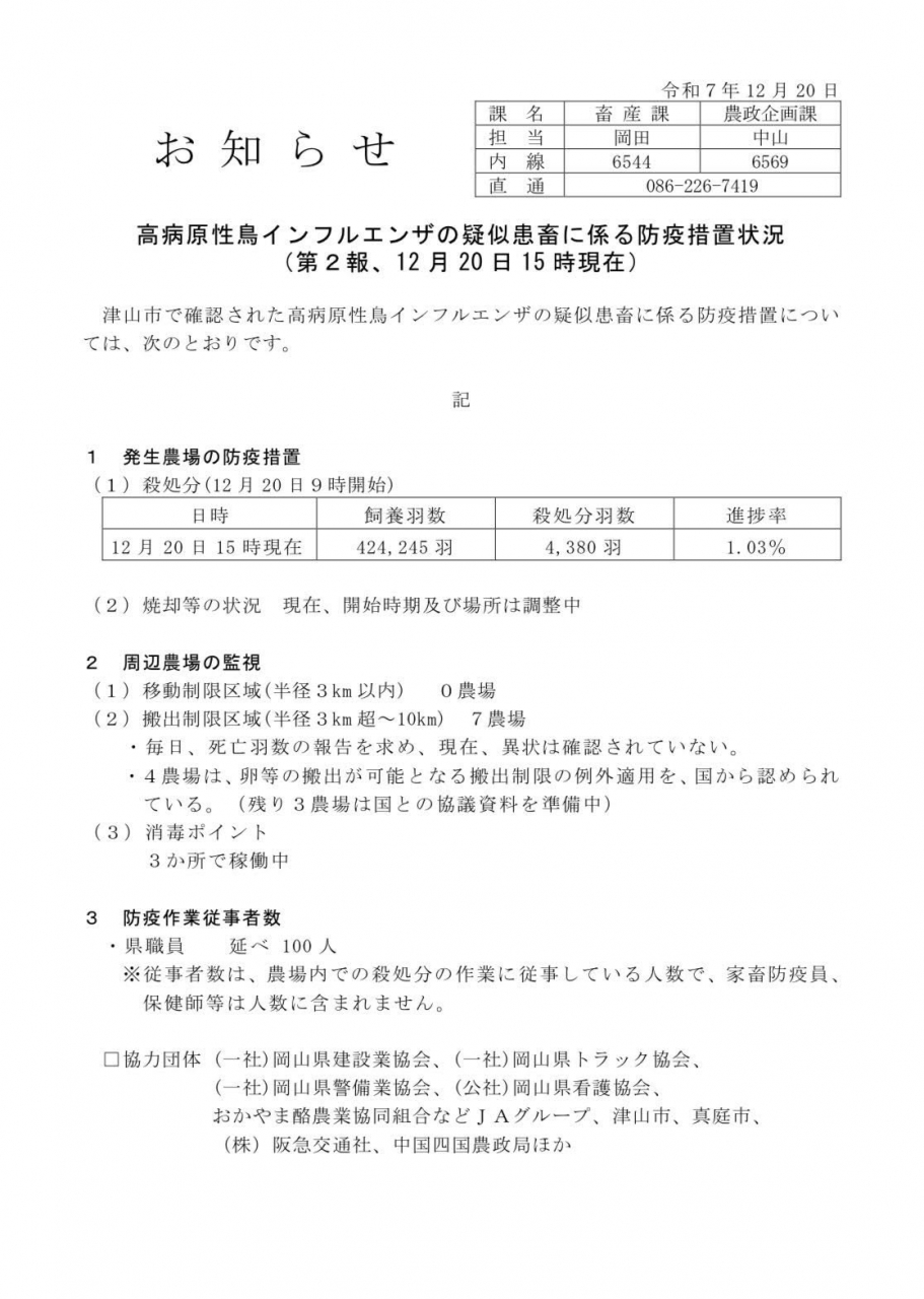 残念なお知らせです。今季全国で8例目です。関係の皆様のご尽力に感謝するばかりです。ありがとうございます。