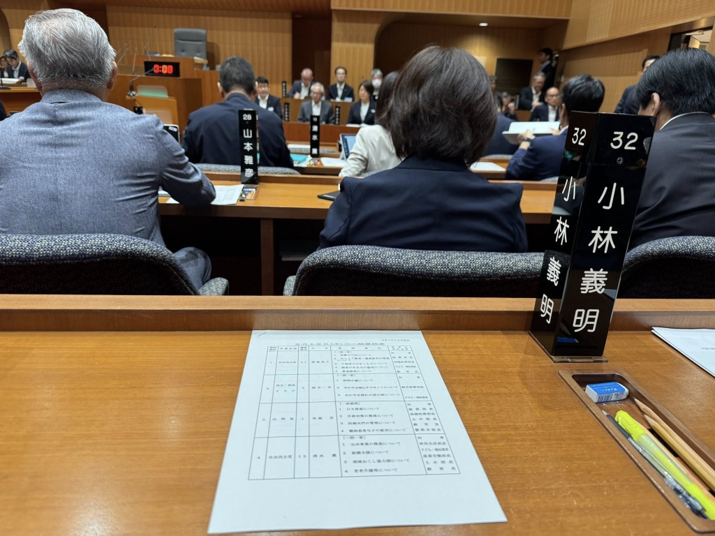 9時頃から、「協議」2件。それから、議長室で「議会儀礼」。知事からご説明を頂きました。10時から、「9月定例岡山県議会」再開。一般質問です。昼休憩時間に、「自民党岡山県議団総会」。請願・陳情、意見書等について。