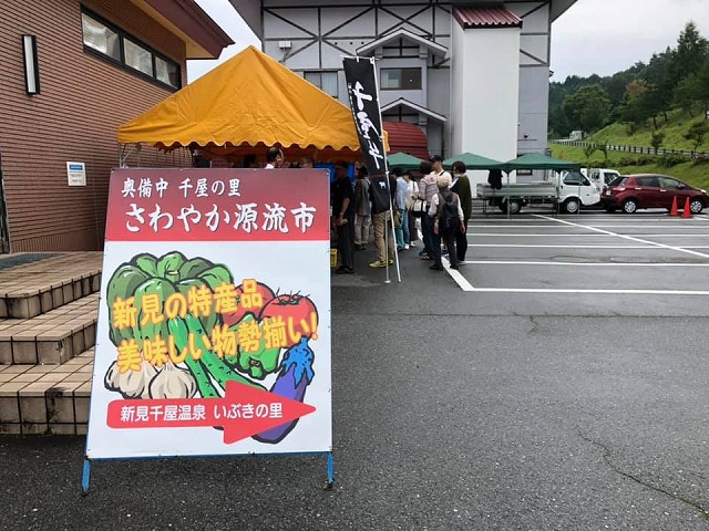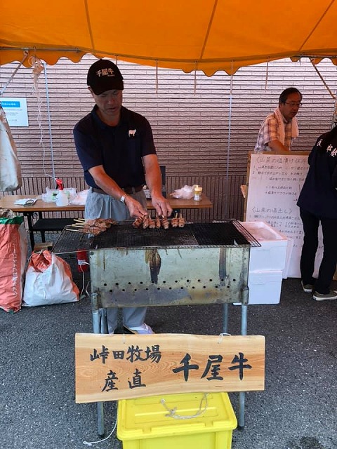 11時から、「千屋温泉駐車場」で開催された『さわやか源流市』に出席しました。「申し訳ねぇけど、旨いで!」と峠田牧場産直の「千屋牛串焼き」を食しました。「とてつもなく旨い!」でした。特産品もいろいろありました。旨いものは旨い!