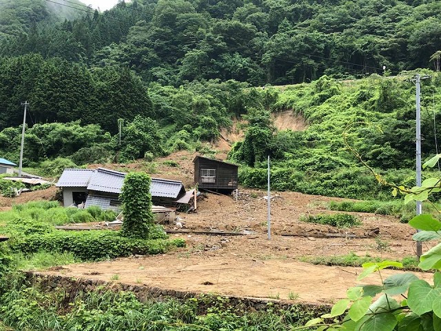 新郷地区へは向かう新見日南線が遮断されているので、予定を変更して、千屋から菅生を抜けて大佐地区、それから熊谷へ向かいました。その様子は写真で。ご注意願いたいと思います。