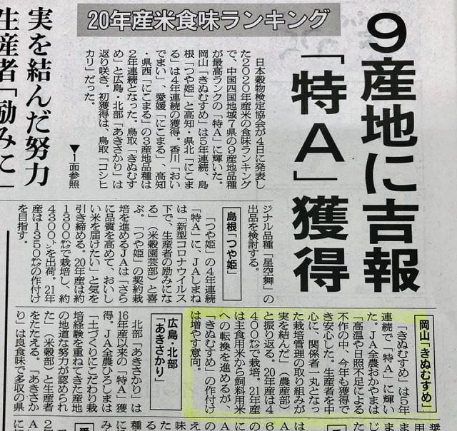 5年連続「特A」を獲得した岡山産の「きぬむすめ」をいただいた。どんな味なんだろう。楽しみです。