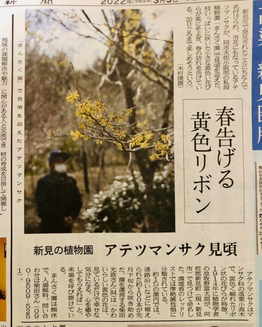 新見に春を告げる「アテツマンサク見頃」と「岡山県議会の選挙区と定数」のニュースは、地域とともにの「山陽新聞」。