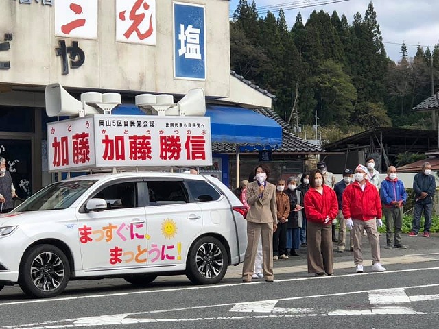 今日午前中、加藤勝信選挙カーと共に新見市内を走った。加藤勝信候補はいないが、「わかった!留守は守る!」と、多くの皆様が出て下さった。周子夫人、長女紗希さんも一生懸命のお願いだ。