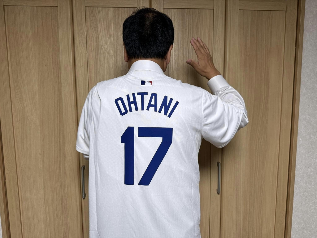 おめでとうございます。51ホームラン&51盗塁。縁起をかついで袖を通さなかった大谷翔平ユニホームを着てお祝い笑笑